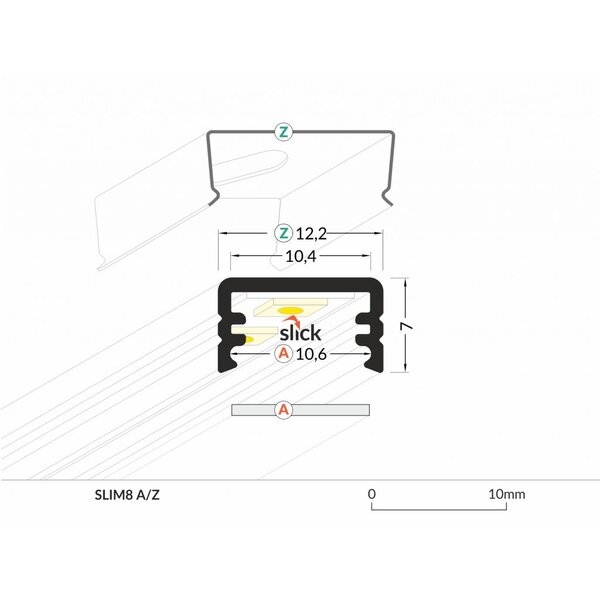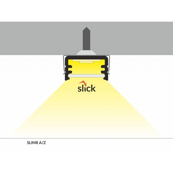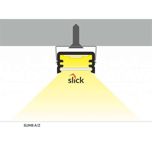Dit SLIM profiel heeft een SLICK cover functie, dit betekend dat de cover in het profiel kan worden gedrukt en niet vanaf de zijkant erin hoeft te worden geschoven. Dit maakt de bevestiging extra makkelijk!