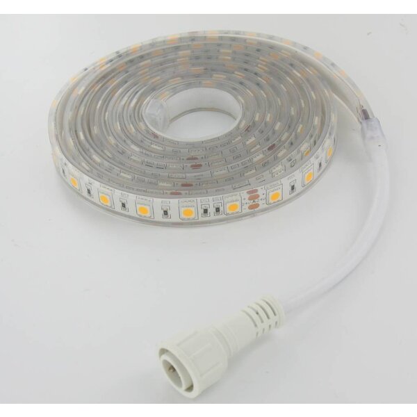 De waterdichte aansluiting die vooraf aan de ledstrip is gemonteerd heeft een lengte van ca. 15cm. Via onderstaande link kunt u kiezen uit verlengkabels van 50cm tot en met 250cm.