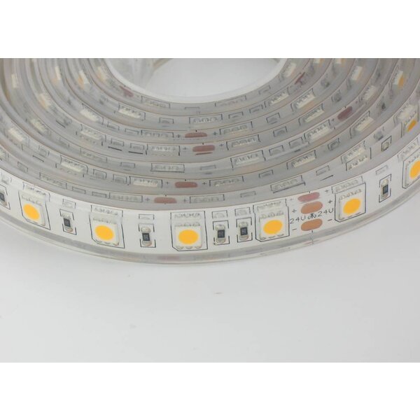 Deze led strip is volledig waterdicht (ip68) en speciaal ontworpen voor verlichting van een aquarium. Door een spanning van 24 Volt is een optimale lange levensduur gegarandeert en bestaat er geen licht verlies door een spanningsdrop. De led strip is voorzien van SMD5050 extra bright leds met een lichtopbrengst van 16 lumen per led. De lengte van 90 centimeter is exclusief de aansluitkabel, houdt hier rekening mee bij het plaatsen in uw aquarium. De ledstrip is inclusief aansluiting en eindkapjes 93cm lang. Heeft u dus geen ruimte om deze 3cm en de kabel weg te werken? Dan kan u het beste een sectie van 10cm van de strip afknippen en deze met aquarium lijm en een eindkapje weer waterdicht maken.