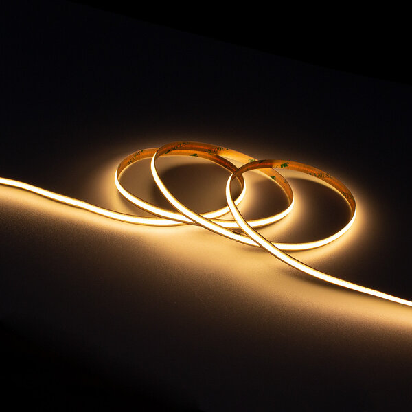 Verlicht jouw interieur of project met deze nieuwste lijn COB LED Strips in 2700K extra warm wit. Met een CRI van 90 heeft de strip een extra warme gloed die perfect past in de woonkamer, keuken of slaapkamer. De strip heeft maar liefst 528 COB chips per meter waardoor er een volledig onafgebroken lichtlijn ontstaat.