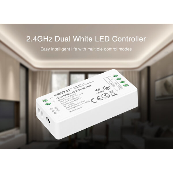 Dit nieuwe type DualWhite (CCT) ledstrip controller van MiBoxer is extra klein zodat deze makkelijker weggewerkt kunnen worden. Daarnaast beschikt deze over de nieuwste functies.
