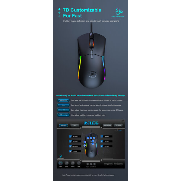 De gamemuis met 7 knoppen is voorzien van RGB LED-verlichting. De verlichting is in 7 kleuren in te stellen, wat zorgt voor een geweldige gamesfeer.