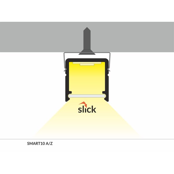Het TOPMET SMARt10 profiel kan op meerdere manieren worden bevestigd. Zo kun je het profiel met dubbelzijdige tape plakken, monteren met kit of een gaatje in het profiel boren en vast schroeven op het oppervlak. Een andere manier is het gebruiken van speciale bevestigingsklemmen. Wij hebben deze op voorraad met verzonken schroefgat en met een standaard schroefgat. Dankzij de metalen klemmen met verzonken schroefgat klemt het profiel direct aan het oppervlak zonder tussenruimte zoals te zien in onderstaande afbeeldingen.