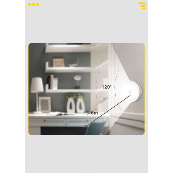 De oplaadbare nachtlamp schakelt automatisch in als er beging gedetecteerd wordt. Het bereik van deze sensor is ongeveer 3 meter met een detectiehoek van 120°. Na de laatste beweging zal de lamp nog ca. 15 seconden blijven branden.