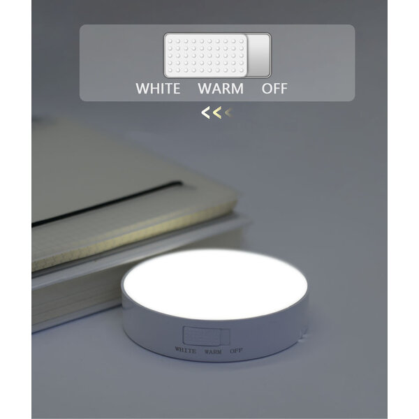 De oplaadbare nachtlamp wordt geleverd inclusief een handige magnetische ophang mogelijkheid. Het metalen plaatje bevat een dubbelzijde 3M tape voor de bevestiging aan de wand, plafond of in een kast. De lamp bevat ook een magneet waardoor deze gemakkelijk aan de bevestigde magneet blijft hangen.